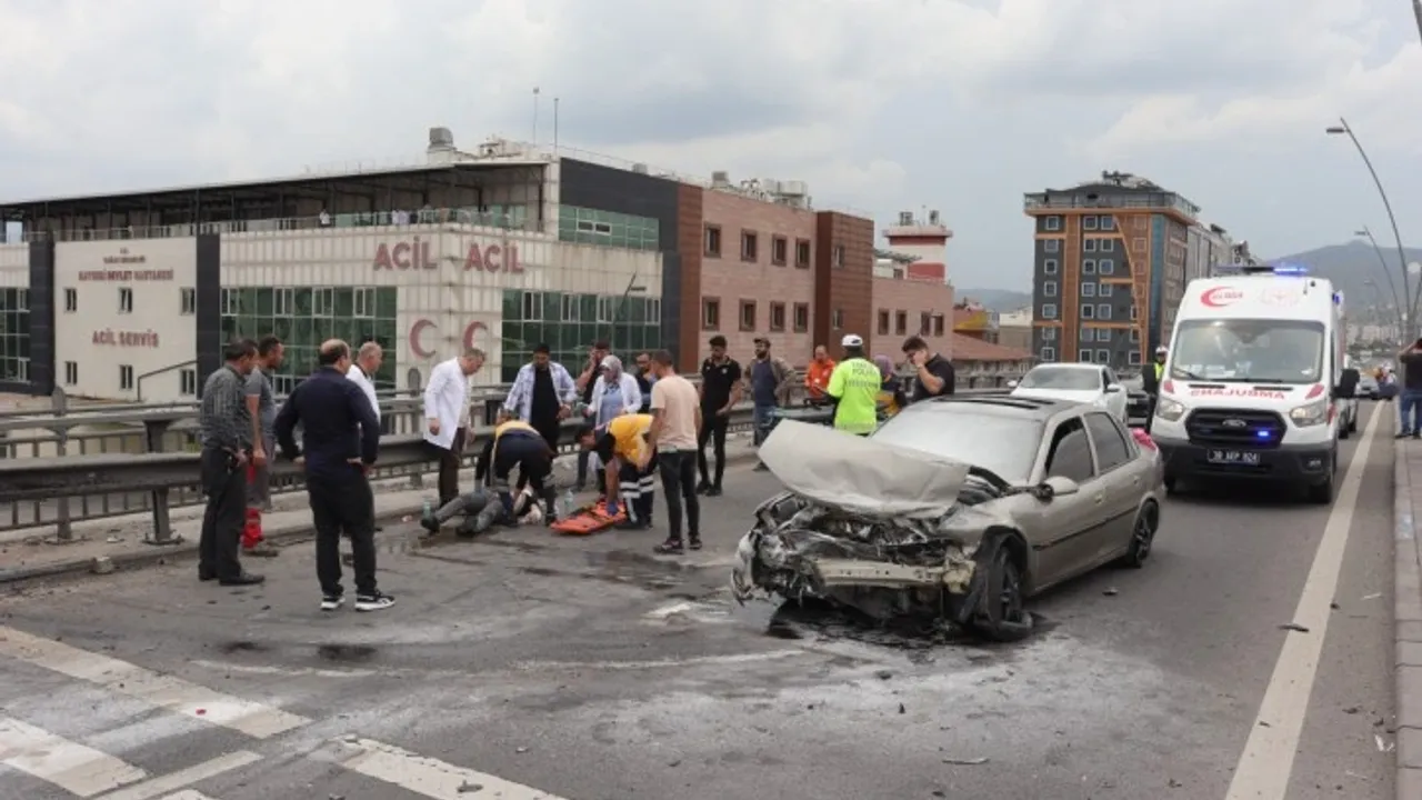 Kayseri'de bir üstgeçitte sürücüsünün direksiyon hakimiyetini kaybettiği otomobil karşı şeride girip bariyere çarptı. Otomobil sürücüsü yaralanırken, kaza yerine yakın olan hastanedeki sağlık çalışanları koşarak yaralıya müdahale etti.