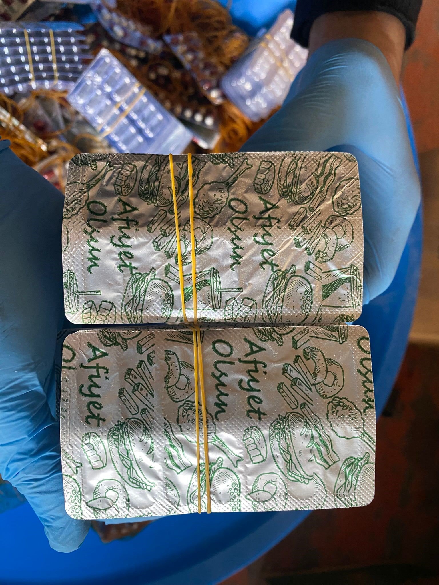 Şebekenin, ürettikleri kaçak sentetik eczaları sevkiyat sırasında polise yakalanmamak için dikkat çeken bir kamuflaj yöntemi kullandığı belirlendi. Hapların bulunduğu ambalajların üzerinde "Afiyet olsun" yazısı ile yiyecek-içecek görsellerine yer verildiği ortaya çıktı.