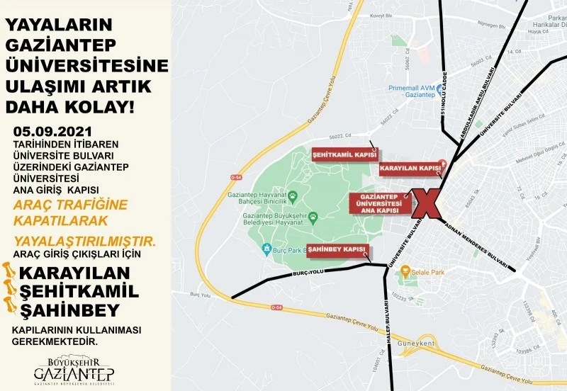 Büyükşehir Belediyesinin yaptığı proje çerçevesinde ana kapı kapatılarak yayalara açık olacak. Araç girişleri ise Şehitkamil, Karayılan ve Şahinbey kapılarından sağlanacak. Bu uygulamanın araç trafiği açısından daha kolaylık sağlayacağı belirtildi.