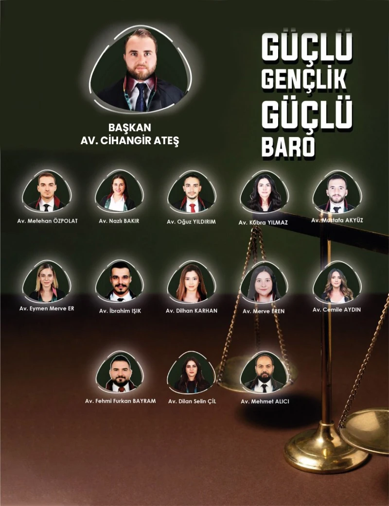 Yeni yönetim kurulu üyeleri arasında Av. Metehan Özpolat, Av. Nazlı Bakır, Av. Oğuz Yıldırım, Av. Kübra Yılmaz, Av. Mustafa Akyüz, Av. Eymen Merve Er, Av. İbrahim Işık, Av. Dilhan Karhan, Av. Merve Eren, Av. Fehmi Furkan Bayram, Av. Dilan Selin Çil ve Av. Mehmet Alıcı yer alıyor. Genç avukatların bu aktif katılımı, mesleki dayanışmanın ve demokratik süreçlerin önemini vurguluyor.