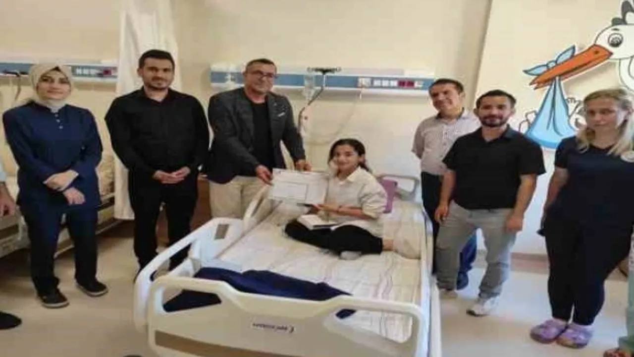 Batman'ın Sason ilçesinde hastanede tedavi gören öğrencilerin karneleri hasta yataklarında verildi.