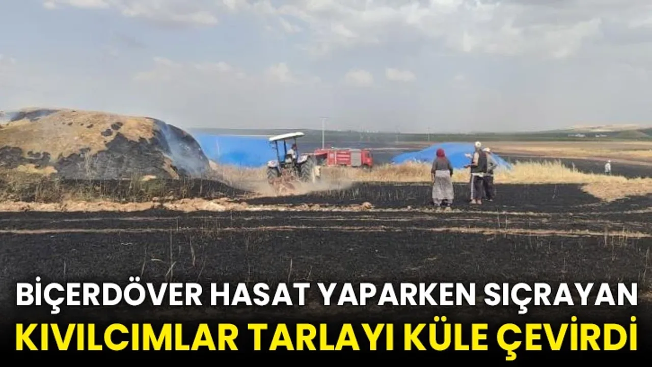 Biçerdöver hasat yaparken sıçrayan kıvılcımlar tarlayı küle çevirdi