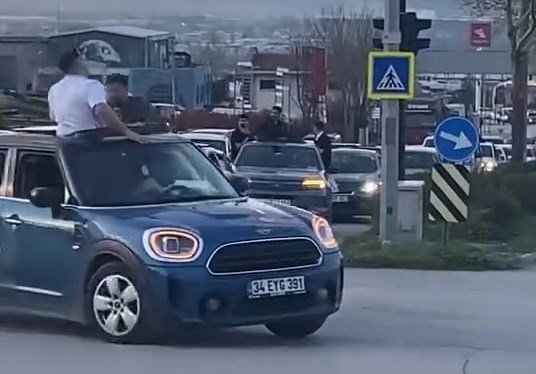 Yıldırım ilçesinde kayda alınan görüntüler, bu kadarına da pes dedirtti. Gelin arabasının arkasından kornalar çalarak ilerleyen araçların bazıları, öne geçmek için hamle yaparken, bazıları ise bilinçsizce sağa sola doğru direksiyon kırdı. Yaklaşık 7 aracın camlarından ve sunrooflarından çıkan vatandaşlar trafik kurallarını hiçe saydı.