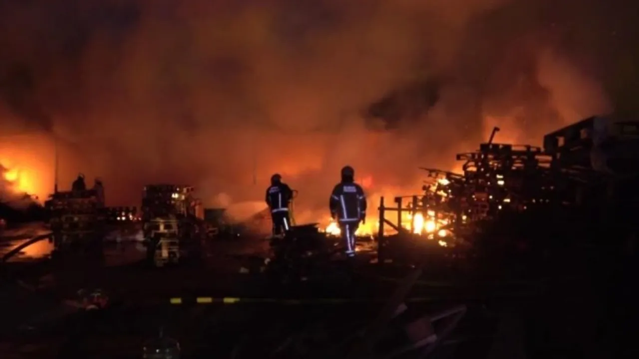 Bursa'da bir palet fabrikası, bilinmeyen bir nedenden dolayı çıkan yangın sonucu kullanılamaz hale geldi. Vatandaşların ihbarı üzerine çok sayıda polis, itfaiye ve 112 acil servis ekibi olay yerine sevk edilirken 15 araç ve yaklaşık 50 itfaiye erinin müdahale ettiği yangın 1 saatt