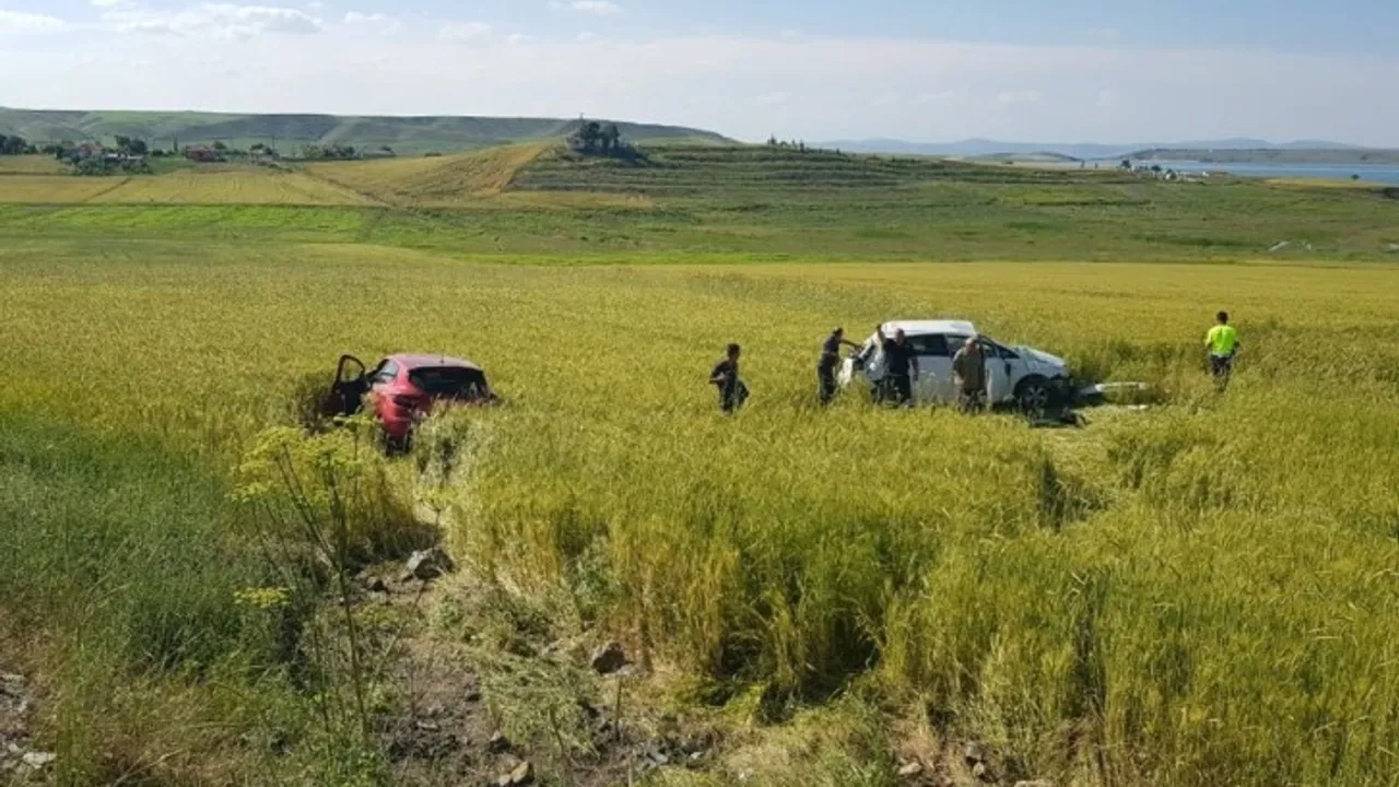 Çorum'un Alaca ilçesinde, çarpışan iki otomobil buğday tarlasına uçtu. Kazada 5 kişi yaralandı.