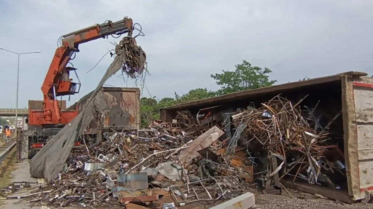 D100'de hurda yüklü tır devrildi: Yol 3 saat kapalı kaldı