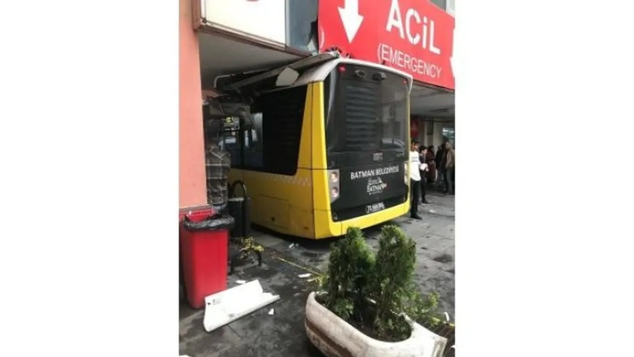 Batman'da fenalaşan yolcuyu fark ederek hastaneye yetiştirmeye çalışan şoförün kullandığı belediye otobüsü, acil girişinde bulunan alçak tavana sıkıştı.Batman kent merkezinde belediye otobüsünde fenalaşan yolcuyu hastaneye yetiştirmeye çalışan şoför, hastaneye vardıktan sonra yüksekliği hesaplayamaması sonucu kaza meydana geldi. Hastanenin acil bölümü girişinde meydana gelen kazada, otobüs tavanı acil bölümünü ve yataklı hasta bölümünü birbirine bağlayan koridora takıldı. Otobüsün koridora takılması sonucu ufak çaplı maddi hasar oluştu. Otobüste fenalaşan yolcu hastanede tedavi altına alındı.