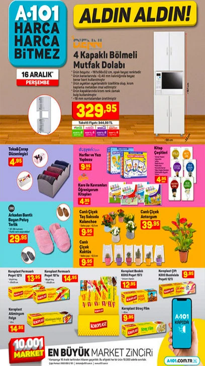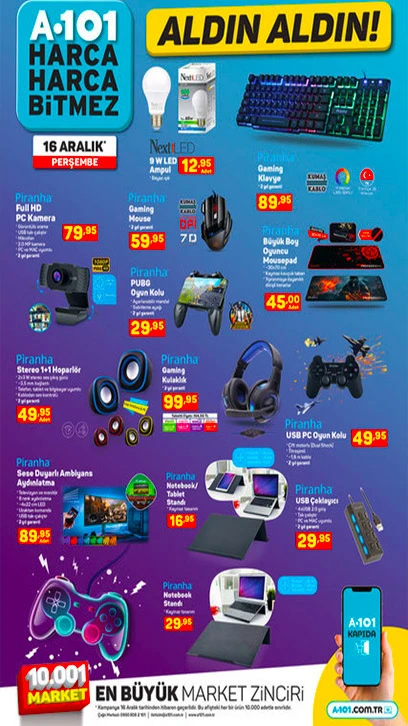 A101 market 11-17 Aralık tarihleri arasında geçerli olacak olan indirimli ürünler listesini yayınlandı. Birbirinden çeşitli ürünleri oldukça makul fiyatlarla satışa sunan A101'de bu hafta neler var merak ediliyor. İşte A101 market hafta sonu ve hafta içi geçerli olacak olan 11-17 Aralık 2021 aktüel ürünler kataloğu..