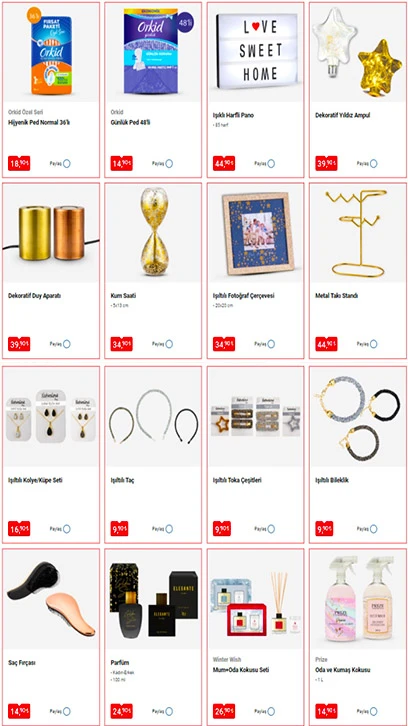 BİM'in Salı günü satışa sunulacak olan aktüel ürünler kataloğunda yer alan dekorasyon ürünlerinde ise; Lowe sweet Home 85 harfli Işıklı Harfli Pano 44,90 TL. Kum Saati 34,90 TL. Dekoratif Yıldız Ampül 39,90 TL, dekoratif Duy Aparatı 39,90 TL, Metal Takı Standı 44,90 TL, Winter Wish Mum Oda Kokusu Seti 26,90 TL. Prize Oda ve Kumaş Kokusu 14,90 TL. Uzaktan Kumandalı Led Ampül 37,90 TL, Selfie Işığı 16,90 TL, Işıklı Fotoğraf Çerçevesi 34,90 TL olacak.