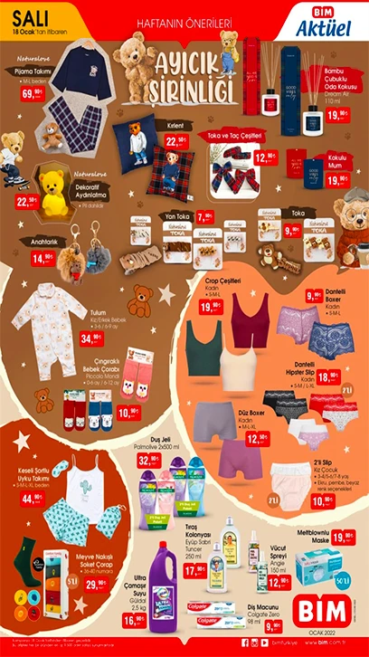 BİM 18 Ocak 2022 aktüel ürünler kataloğunda İç Giyim Ürünleri ile Hijyen ve temizlik grubunda harika fırsat ürünleri dikkat çekiyor.