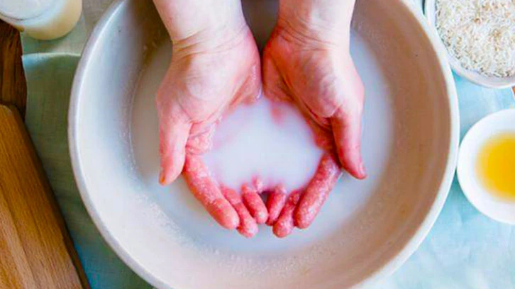 Yarım su bardağı pişmemiş pirinci alın ve hepsini yıkayın. Pirinci 2-3 bardak su ile dolu bir kaba yerleştirin. 30 dakika boyunca suyunu çekmesini bekleyin ve pirinç suyunu temiz bir kaba boşaltın.