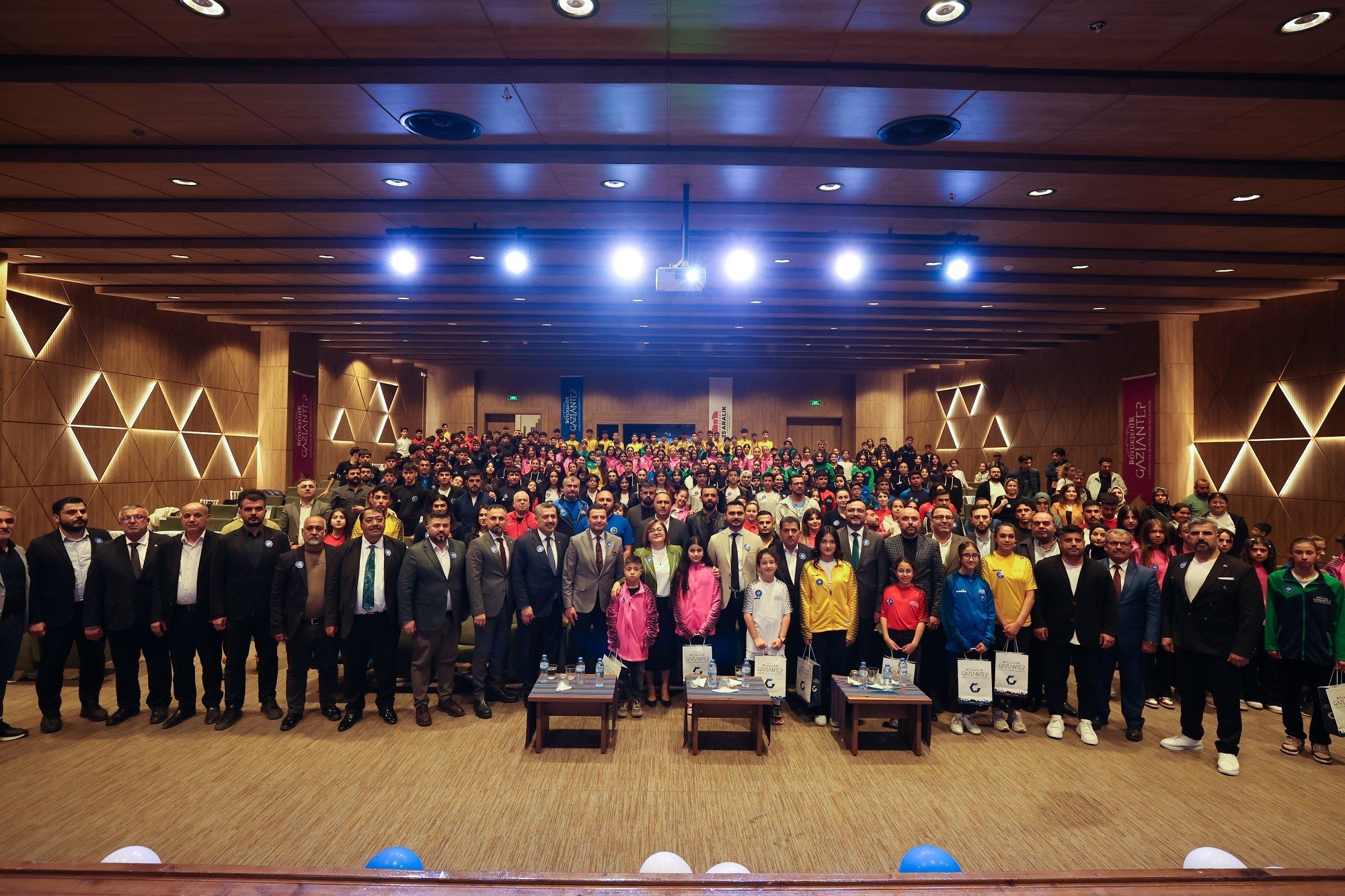 Programda sporcularla bir araya gelen ve konuşma yapan Gaziantep Büyükşehir Belediye Başkanı Fatma Şahin, genç sporcuların başarı bayrağını alıp ileri taşıyacaklarını ifade ederek, "Bu şehri eğitim şehri, bilim şehri, kültür sanat şehri ama ‘Hep birlikte spor şehri yapacağız' dedik. ‘Şimdi hedef on bin başarı' diyoruz. Burada antrenörlerimiz çok önemli. Bu madalyalar kendiliğinden gelmiyor. Alın teri, akıl teri. Büyük bir gayret, büyük bir imanla büyük bir hedefe odaklanmak gerekiyor. Bize düşen şey, küçücük bir destek, malzeme, tesis. Bugün artık büyük hedeflere doğru gidiyoruz. 2053'e koşacağız. 2053'te biz yokuz. Ama yarının belediye başkanları burada. Yarının il müdürleri burada, yarının bakanları burada, yarının güçlü sporcuları burada olacak. 2071'e koşacaksınız. Yarın siz de burada milli sporcular olarak Al yıldızlı Bayrağı bütün dünyaya dalgalandırıp ‘Korkma!' diye başlayan İstiklal Marşımızı bütün dünyada okutacaksınız. ‘10 bin başarı hedefine odaklanın' diyoruz" dedi.