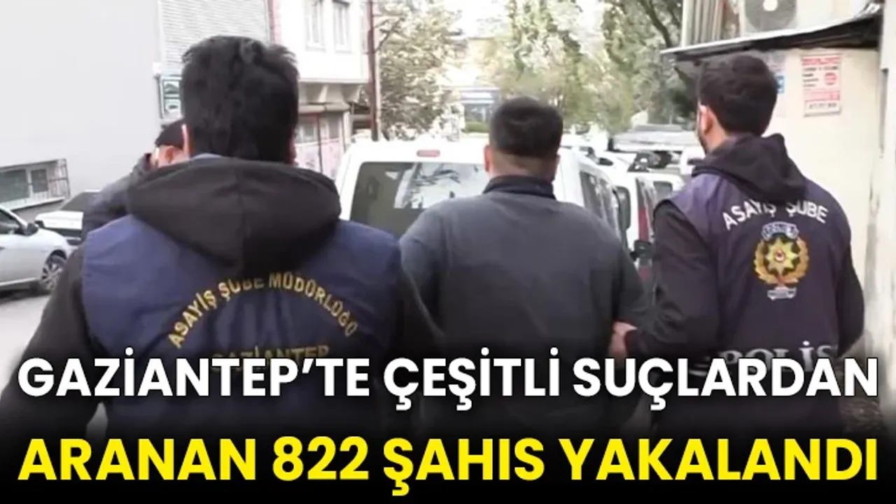 Gaziantep İl Emniyet Müdürlüğüne bağlı Asayiş Şube Müdürlüğü ekipleri son bir ay içerisinde kent genelinde aranan şahısların yakalanmasına yönelik operasyon düzenledi. Düzenlenen operasyonlarda çeşitli suçlardan aranan 822 şahıs yakalandı.Yakalanan şahıslar hakkında yasal işlem yapıldı.