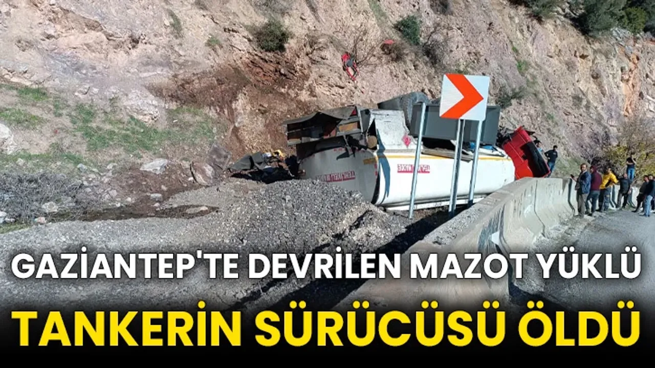 Gaziantep'in Nurdağı ilçesinde devrilen mazot yüklü tankerin sürücüsü hayatını kaybetti.