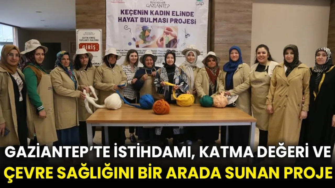 Gaziantep’te kırsal alanda hayvancılıkla geçimini sağlayan ailelere, keçe yapımı öğretilerek hem küçükbaş hayvanlardan elde edilen yüne katma değer kazandırılıyor hem kadın çiftçilerin istihdam oranı artırılıyor hem de koyun ve keçi yünü yakımının önüne geçilerek çevreye verilen zarar engelleniyor.