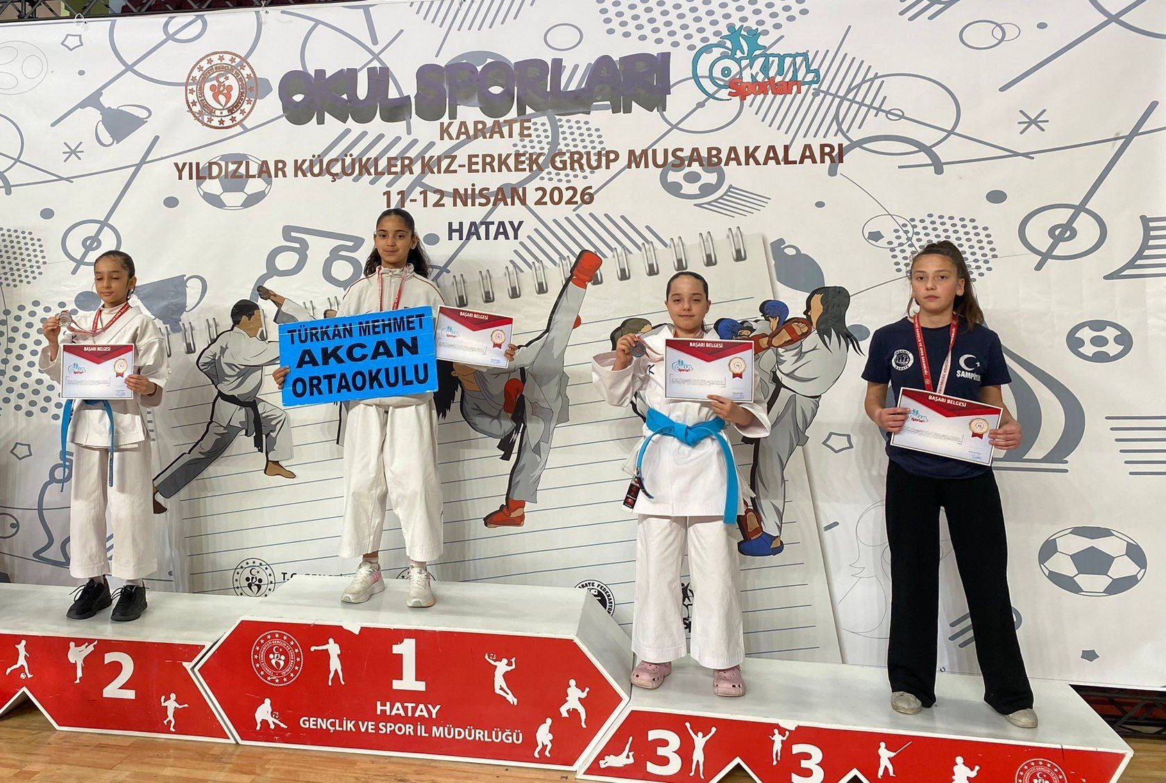 Hatay Gençlik ve Spor İl Müdürlüğü tarafından organize edilen turnuvaya Gaziantep'ten katılan Kıbrıs Ortaokulu ve Türkan Mehmet Akcan Ortaokulu 7'inci sınıf öğrencileri Nesibe Nur Şimşek ile Zeynep Yavuz, kendi kategorilerinde şampiyon olarak altın madalya kazandı.