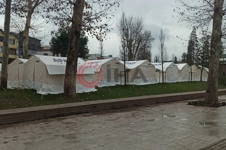Merkez üssü Gölyaka ilçesi olan 5,9 büyüklüğündeki depremin ardından dışarı çıkan ve korktukları için evlerine dönmek istemeyen depremzedeler, AFAD tarafından kurulan çadırlarda konaklıyor. Son günlerde yaşanan artçı depremlerin ardından panik olan vatandaşlar, evlerine girmeye korkuyor. Ekipler tarafından tüm ihtiyaçları karşılanan depremzedelere, Türk Kızılay tarafından yemek de dağıtılıyor. Çadırda kalan bazı vatandaşlar ise kendi yemeklerini kendileri yapıyor. Çadırda yemeklerini pişiren vatandaşlar, bulaşıklarını da burada yıkıyor.