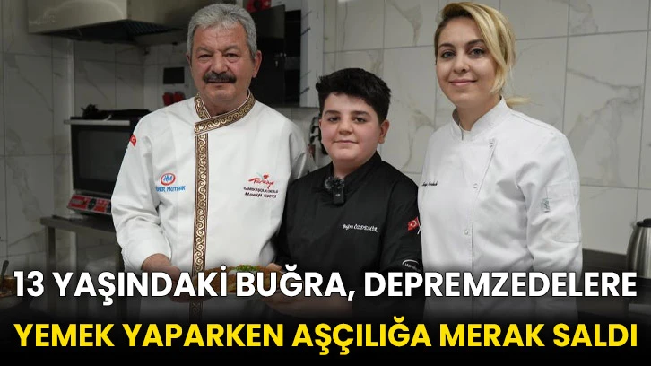 Gaziantep Büyükşehir Belediyesi'ne bağlı Aziz Sancar Eğitim ve Sanat Merkezi'nde aşçı yardımcısı olarak eğitim alan Buğra Özdemir, 13 yaşında olmasına rağmen kendisinden yaşça büyük insanlardan bile daha iyi yemek yapma becerisi gösteriyor. 13 yaşındaki Buğra, dedesinin de aşçı olması nedeniyle mesleğe olan ilgisinin yanı sıra depremde yardıma muhtaç insanların hayatına dokunmanın da kendisinde duygusal olarak büyük etki gösterdiğini ve bu sebeple aşçı olmak istediğini söyledi.