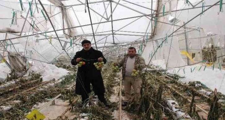 Adıyaman'da 15 dönüm kapalı alana sahip sera yoğun kar yağışına dayanamayarak çöktü. Serada ki tonlarca ürün çürüdü.