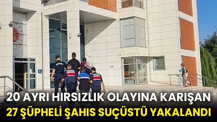 Gaziantep İl Jandarma Komutanlığınca, Cumhuriyet Başsavcılığı takip ve koordinesinde hırsızlık olaylarının önlenmesine yönelik Şahinbey, Şehitkâmil, Oğuzeli, İslahiye, Nurdağı ve Nizip ilçelerinde son iki haftalık süreçte yapılan devriyeler esnasında 20 ayrı hırsızlık olayına karışan 27 şüpheli şahıs suçüstü yakalandı.