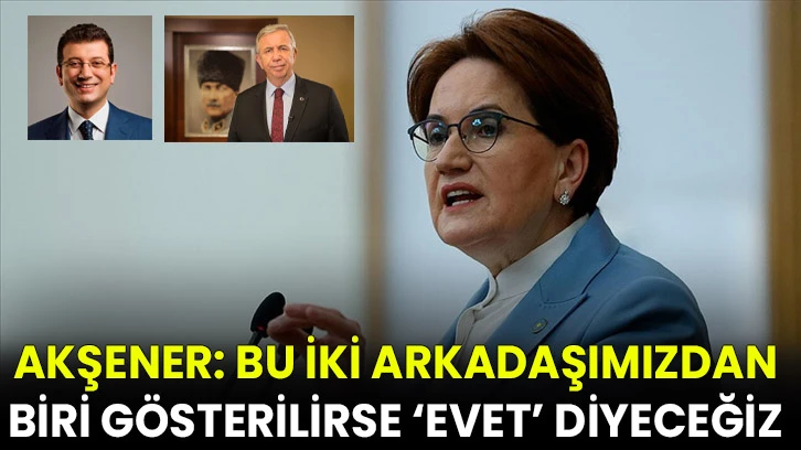 İYİ Parti lideri Akşener, katıldığı canlı yayında yaptığı dikkat çeken açıklamalarda bulundu. Cumhurbaşkanlığı adaylığı tartışmasıyla ilgili konuşan Akşener, "Mansur Bey’e de Ekrem Bey’e de tüm seçmenlerin sevgisi, saygısı var. Masadaki arkadaşlara da söyledim. Eğer bu iki arkadaşımızdan biri gösterilirse ‘evet’ diyeceğiz" dedi.