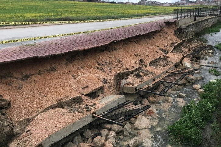 İhbar üzerine polis ve itfaiye ekipleri olay yerine sevk edildi. İncelemede aşırı yağış nedeniyle zeminin yumuşaması sonucu dere kenarındaki 3 metre yüksekliğindeki duvarın yaklaşık 20 metre uzunluğundaki bir bölümünün çöktüğü belirlendi. Çöken duvarın yol kısmında emniyet şeridiyle güvenlik önlemi alındı.