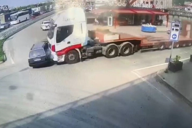 Kaza Hopa-Artvin karayolu viyadük altında bulunan kavşakta meydana geldi. Alınan bilgiye göre, sürücüsü tespit edilemeyen 08 K 6073 plakalı tır, kavşağa giren 53 EC 597 plakalı otomobile çarptı. Çarpmanın sonunda otomobil refüje çıktı. Tır ve otomobilde maddi hasar oluşurken, otomobilin içinde bulunan 3 kişi kazada araç içinde sıkışarak yaralandı. Olayı gören vatandaşların haber vermesi üzerine bölgeye 112 acil sağlık, itfaiye ve polis ekipleri sevk edildi. Yaralılar sıkıştıkları araçtan çıkarılıp olay yerinde yapılan ilk müdahalenin ardından ambulansla Hopa Devlet Hastanesi'ne kaldırılarak tedavi altına alındı. Seyir halinde olan tırın, kavşağa giren otomobile çarpma anı ise güvenlik kameralarına saniye saniye yansıdı.