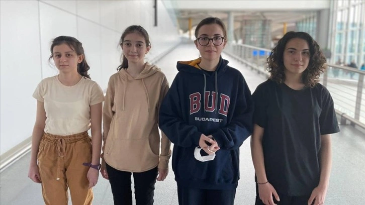 Dereceye giren öğrenciler ve öğretmenleri, Macaristan'ın başkenti Budapeşte'den gelen THY'nin tarifeli uçağıyla saat 12.00'de İstanbul Havalimanı'na indi.