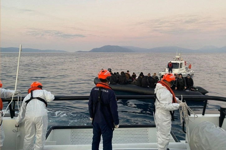 Aydın ili Kuşadası ilçesi açıklarında görevli Sahil Güvenlik Botları (TCSG-909, KB-4325) tarafından tespit edilen hareketli lastik bot durdurulurken, içerisindeki 39 düzensiz göçmen yakalandı. Yakalanan düzensiz göçmenler işlemlerinin ardından İl Göç İdaresi Müdürlüğü'ne gönderildi.Onur Durmuş - Ekrem Keser