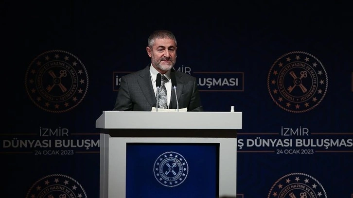 Bakan Nureddin Nebati, İzmir'de bir otelde düzenlenen İzmir İş Dünyası Buluşması'nda yaptığı konuşmada, kamu alacakları konusunda Cumhurbaşkanı Erdoğan'ın müjde verdiğini hatırlattı.