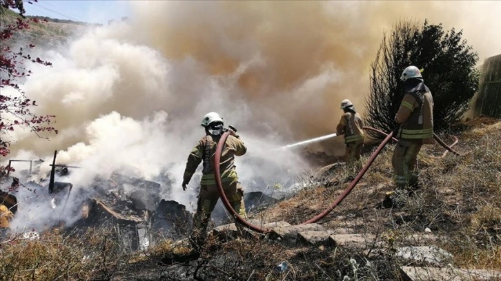 Bahçeşehir 1. Kısım Çınarlı Caddesi'nin kenarındaki bir arazide hurda malzemelerin bulunduğu boş alanda henüz belirlenemeyen nedenle yangın çıktı.