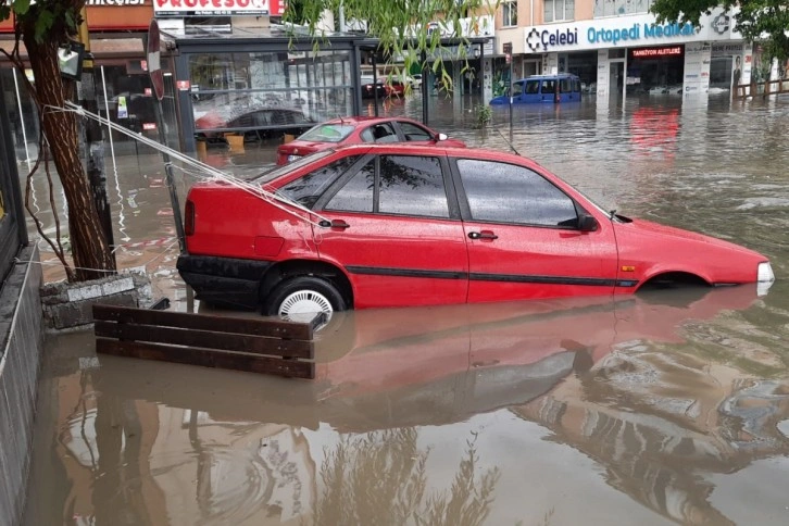 Ankara'da dün öğle saatlerinde sağanak ve ardından dolu yağışı başladı. Kuvvetli yağışın zaman zaman artmasıyla bazı bölgelerde su baskınları yaşandı. Ev ve iş yerleri su ile dolarken, cadde ve sokaklar göle döndü, araçlar suya gömüldü. Sürücüler yollarda biriken sular nedeniyle ilerlemekte güçlük çekerken, yağışa cadde ve sokaklarda hazırlıksız yakalanan vatandaşlar kapalı alanlara sığınarak sağanağın durmasını bekledi. Otomobili selde sürüklenen bir vatandaş, aracını iple ağaca bağladı. O anlar ise kameralara yansıdı.