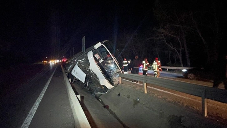 Çanakkale'den Ankara'ya gittiği öğrenilen 06 BFV 850 plakalı tur otobüsü, İnegöl ilçesi Şehitler mevkisinde, bariyere çarparak devrildi.