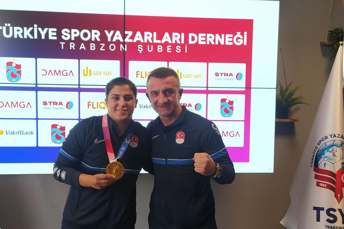 2020 Tokyo Olimpiyat Oyunları kadınlar boks 69 kiloda finalde Çinli rakibi Hong Gu'yu mağlup ederek altın madalya kazanan Trabzonspor Kulübü'nün sporcusu Busenaz Sürmeneli ile antrenörü Cahit Süme, Türkiye Spor Yazarları Derneği (TSYD) Trabzon Şubesi'nde düzenlenen basın toplantısında açıklamalarda bulundu.