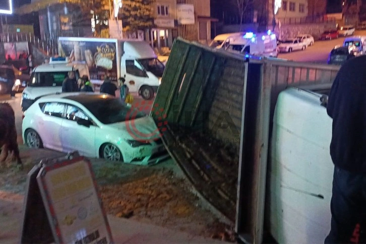 Hafriyat kamyonu otomobilin üzerine devrildi