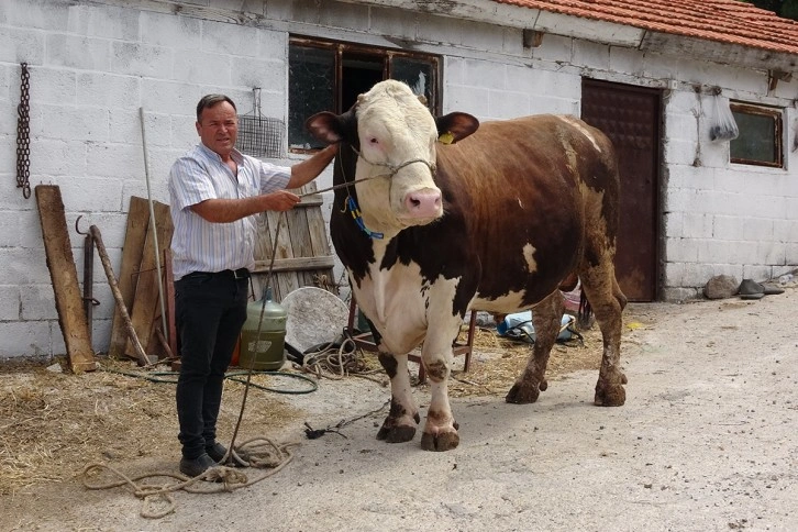 Ayvacık ilçesine bağlı Paşaköy'de 36 yıldır büyükbaş hayvan yetiştiriciliği yapan Hasan Yavaş'ın (54), 3 yaşındaki simental kırması cinsi boğası 1 ton 600 kilograma ulaştı. Baba mesleği olan büyükbaş hayvan yetiştiriciliğini devam ettiren Hasan Yavaş, Kurban Bayramı öncesinde ikinci el otomobil fiyatlarıyla yarışan 1 ton 600 kilogram ağırlığındaki ‘Paşa' isimli boğasını 220 bin TL'den satışa çıkardı. 1 ton 600 kilo ağırlığındaki boğa bayramın 1'inci günü Ümit Erdem ve Turan Kaya'ya 210 bin TL'den satıldı.