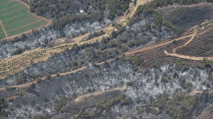 Havadan yapılan tur sırasında yangının ilk çıktığı Damyeri mevki ve sonrasında rüzgarın etkisiyle yayıldığı 15 kilometrelik hattaki alanlar görüldü.