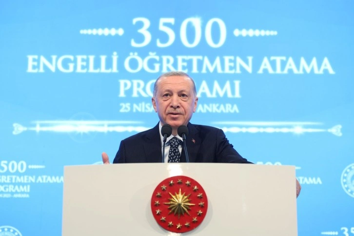 Engellilerini ihmal eden bir ülkenin potansiyelinin bir kısmından vazgeçmiş olduğunun altını çizen Erdoğan, "Biz bunun için engellilerin hayata katılımı konusunda çok önemli reformlar gerçekleştirdik. Maddi katkının kurumsal kapasiteyi genişletmenin ötesinde bu alanda bir zihniyet devrimi gerçekleştik. Engellilerimizin hayatın her alandaki başarısıyla gurur duyuyorsak bu büyük dönüşüm sayesindedir. Engelli öğretmenlerimizin, çocuklarımızın eğitim öğretimine verecekleri eşsiz katkı yanında aynı durumdaki çocuklarımız, gençlerimiz için rol model olacağına inanıyorum. Malzemesi insan olan öğretmenlik yükü ağır bir sorumluluktur. Hele bir de engelli olmanın getirdiği zorluklarla öğretmenlik mesleğinin ifasının ne anlama geldiği tasavvur etmek bile güç. Sizler bu sıkıntıların hepsinin üstünden gelme iradesiyle bugün buradasınız. Engellilerimizle ilgili nadiren de olsa önümüze çıkan ön yargılar, yanlış değerlendirmeler hala olabiliyor ama geçmişle mukayese edilemeyecek kadar iyi bir noktaya geldiğimiz bir gerçektir. Biz bunu yeterli görmüyoruz. Hep birlikte çok daha fazlasına ulaşmamız gerekiyor. Medeniyet köklerimizde var olan değerleri devletimizin imkanlarıyla bütünleştirerek ülkemizi dünyaya örnek olacak bir seviye çıkarmakta kararlıyız. Türkiye Yüzyılı2nın alameti farikalarından biri de bu olacaktır. Bu ülkenin ister engelli, olsun, ister engelsiz, gayreti, kabiliyeti azmi ölçüsünde önünde tüm kapılar sonuna kadar açıktır” dedi.