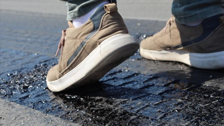 Hava sıcaklığının 42 dereceye yükselmesi nedeniyle bazı yollarda asfalt eridi.