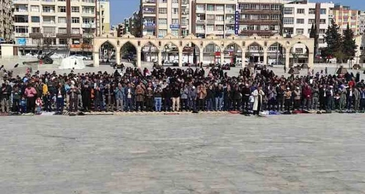 Kahramanmaraş merkezli depremlerde hayatını kaybedenler için Şanlıurfa'da öğle namazını müteakip yüzlerce Müslüman, Topçu Meydanı'nda gıyabi cenaze namazı kıldı.
