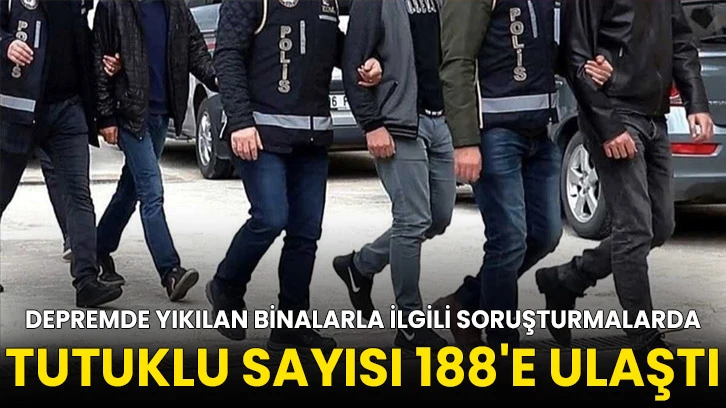 Kahramanmaraş merkezli depremlerden etkilenen illerde yıkılan ya da imara aykırı değişiklik tespit edilen binalarla ilgili soruşturmalarda tutuklananların sayısı 188'e yükseldi.