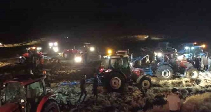 6 Şubat depreminde ağır hasar alan Adıyaman'da, 136 dönümlük arpa tarlasında çıkan yangını duyanlar alevlere müdahale etmek için koştu. Yaklaşık 100'e yakın traktörün alevlerin önünü kesmek için geldiği olay yerinde yangını duyan istirahatteki polislerde söndürme çalışmalarına ayaklarındaki terliklerle yetişti.