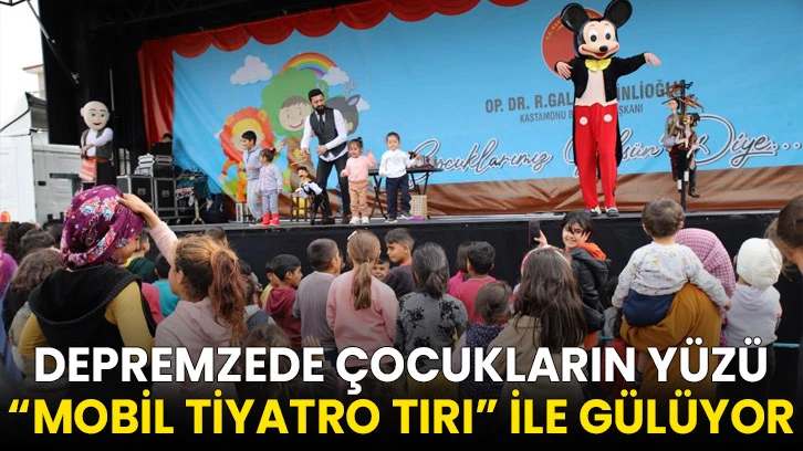 Kahramanmaraş Pazarcık ve Elbistan merkezli depremlerden etkilenen bölgelerde ciddi travmalar yaşayan çocuklara acılarını unutturmak için hayata geçirilen “mobil tiyatro tırı” projesi çocukların yüzünü güldürüyor. Kastamonu Belediye Başkanı Op. Dr. Galip Vidinlioğlu’nun talimatları ile bölgeye gönderilen mobil tiyatro tırı, depremlerden etkilenen illerde ateşbaz, bubble şov, jonglör, sihirbaz gösterisi, maskotlar, palyaçolar, çocuk eğlenceleri, yarışmalar ve Hacıvat-Karagöz gösterileriyle deprem bölgesindeki çocuklara neşe kaynağı oluyor.