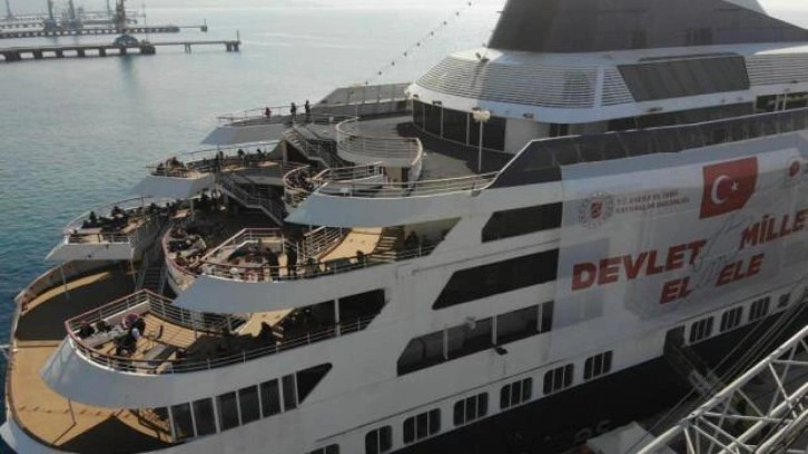 150 mürettebatın bulunduğu gemide 400 kamarada bin 56 kişinin konaklama imkanı bulunuyor. AFAD tarafından ring araçlarıyla gemiye getirilen depremzedelerin kayıtları yapılarak kartları veriliyor, ardından odalarına yönlendiriliyor.