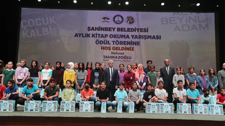 Şahinbey Kongre ve Sanat Merkezinde düzenlenen törende dereceye giren öğrencilere bisiklet, kol saati hediye ve kitap seti hediye edildi. Düzenlenen törene Şahinbey Belediye Başkanı Mehmet Tahmazoğlu, Şahinbey İlçe Milli Eğitim Müdürü Erdal Kılınç, vatandaşlar ve öğrenciler katıldı. Şahinbey Belediye Başkanı Mehmet Tahmazoğlu eğitim seviyesinin daha da üst seviyeye çıkması için kitap okumayı teşvik ettiklerini belirterek, “Dinimizin ilk emri oku. Okumak ve öğrenmek dinimizin emri. Şahinbey Belediyesi olarak bizde bunu yapmaya çalışıyoruz. Şuana kadar 12 milyon 125 bin 389 adet kitap dağıtımı gerçekleştirdik. LGS’de Şahinbey İlçemiz en gerideyken, şuanda birinci sıradayız. Çalışıp başarılı olmak zorundayız. Gençlerimiz için 209 tane gençlik merkezi yapıp, ana sınıfları ve okuma yazma kursları açtık. TEKNOFEST’e katılan tüm takımlara sponsor olduk. Bunların yanı sıra 9 Millet, 9 Z kütüphanesi açtık. Öğretmen ve öğrencilerimizi Bilim Teknik Dergisine abone yaptık ki abonelik ücretleri belediyemiz tarafından karşılanıyor. Yamaçtepe Ormanı içerisine Bilim Kampı yaptık. Öğrencilerimiz orada kampa girip eğitim alıyorlar. Öğrencilerimizi Çanakkale’de ecdadıyla buluşturuyoruz. Yıl sonunda 145 bin öğrencimizi ve vatandaşı Çanakkale’de ecdadımızla buluşturmuş olacağız. Daha önceki kitap okuma yarışmalarında 524 öğrencimizi Umre’ye, Bosna Hersek’e ve Ayasofya’ya götürdük. Öğrencilerimize her yıl karne hediyesi olarak spor ayakkabısı hediye ediyoruz. Bu yılda 17 Hazirandan itibaren öğrencilerimize karne hediyesi olarak spor ayakkabısı dağıtmaya devam edeceğiz. Gençlerimizi seviyoruz. Gençlerimizin daha çok okuyup öğrenmesini teşvik ediyoruz. Eğitime önem veriyoruz. Desteklerimizi arttırarak sürdüreceğiz” dedi.
