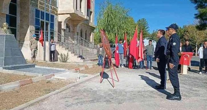 Fatih Ortaokulunda görevli İngilizce Öğretmeni Derya Nergiz'in sunduğu tören, Dicle Kaymakamlığı ve Belediye Başkanlığı tarafından Atatürk büstüne çelenk sunulmasıyla başladı.