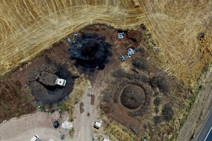 “Günün 24 saatti hep başında duruyoruz”Odunların 20-25 gün ateşte kaldığını ifade eden Şan, “Günün 24 saatti hep başında duruyoruz. Gece-gündüz nöbette kalıyoruz. Bu işlem yakım sürecinde 20 güne yakın kalacak. Bu işlemden sonra sönme aşaması var. Toprağın için girmesiyle bunu temizliyoruz. Bundan sonrası çıkarım ve satış aşamasına gidiyor. Bu meşe mangalı kömürüdür. Bunun kilosu ortalama 12-13 lira arası. Bu bizi kurtarmıyor, fiyatların yükselmesini bekliyoruz. Burada 35-40 tona yakın odun var. 8-9 ton kömür bekliyoruz” diye konuştu.Rıdvan Kılıç - Hasan Alan - Abdulkerim Kantarcıoğlu