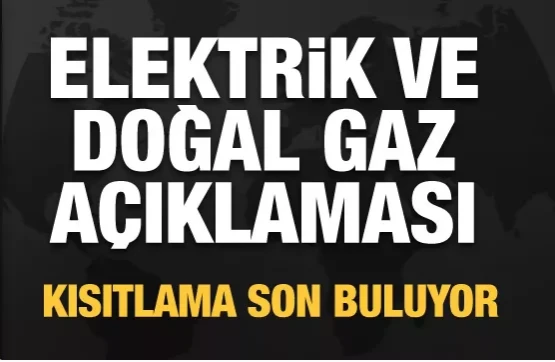 Enerji ve Tabii Kaynaklar Bakanı Fatih Dönmez, yaptığı açıklamada, "Sanayi tesislerine uygulanan elektrik kısıtlaması 29 Ocak itibarıyla kaldırılarak son bulacak. Doğal gazda uygulanan kısıntı ise 31 Ocak'tan itibaren yüzde 40'tan yüzde 20'ye düşürülecek" dedi.