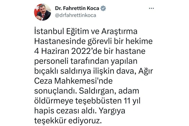 İstanbul Eğitim ve Araştırma Hastanesinde pratisyen hekim olarak görev yapan Halit Altınok'a bıçakla saldırdığı iddiasıyla yargılanan hastanenin temizlik görevlisi Ramazan Çalışkan'ın davası karara bağlandı. İstanbul 21. Ağır Ceza Mahkemesi'nde görülen duruşmada tutuklu sanık Ramazan Çalışkan ve avukatı hazır bulundu. Duruşmaya müşteki Halit Altınoluk ile avukatı, İstanbul İl Sağlık Müdürlüğü avukatıyla birlikte katıldı.