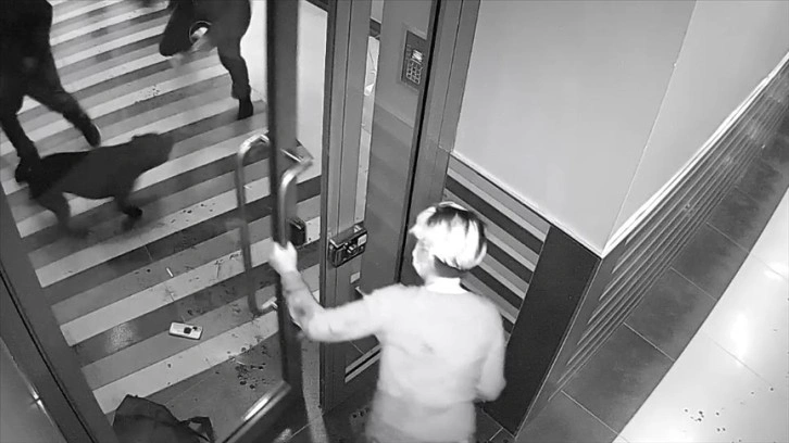 Biri 7, diğeri 11 yaşındaki çocuklarının zarar görmemesi için köpeğin önüne atlayan kadın yere düştü. Eşi ve çevredekilerin müdahalesiyle köpekten kurtulabilen anne ve çocukları, apartman girişine sığındı.